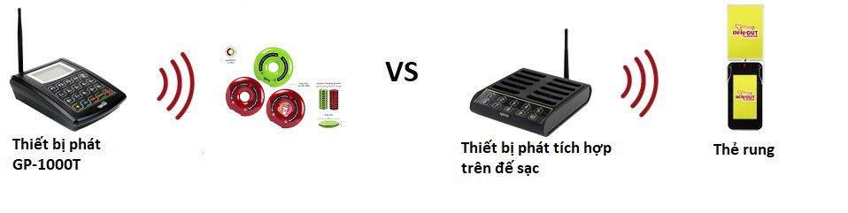 Truyền và thu tín hiệu dưới dải tần số 433MHZ, một cách ổn định trong phạm vi tối đa 300m. Thẻ rung có vai trò là thiết bị thu tín hiệu, nhận thông tin từ thiết gọi khách hàng báo rung + phát sáng và đổ chuông để báo hiệu cho khách biết và quay lại quầy lấy đồ.